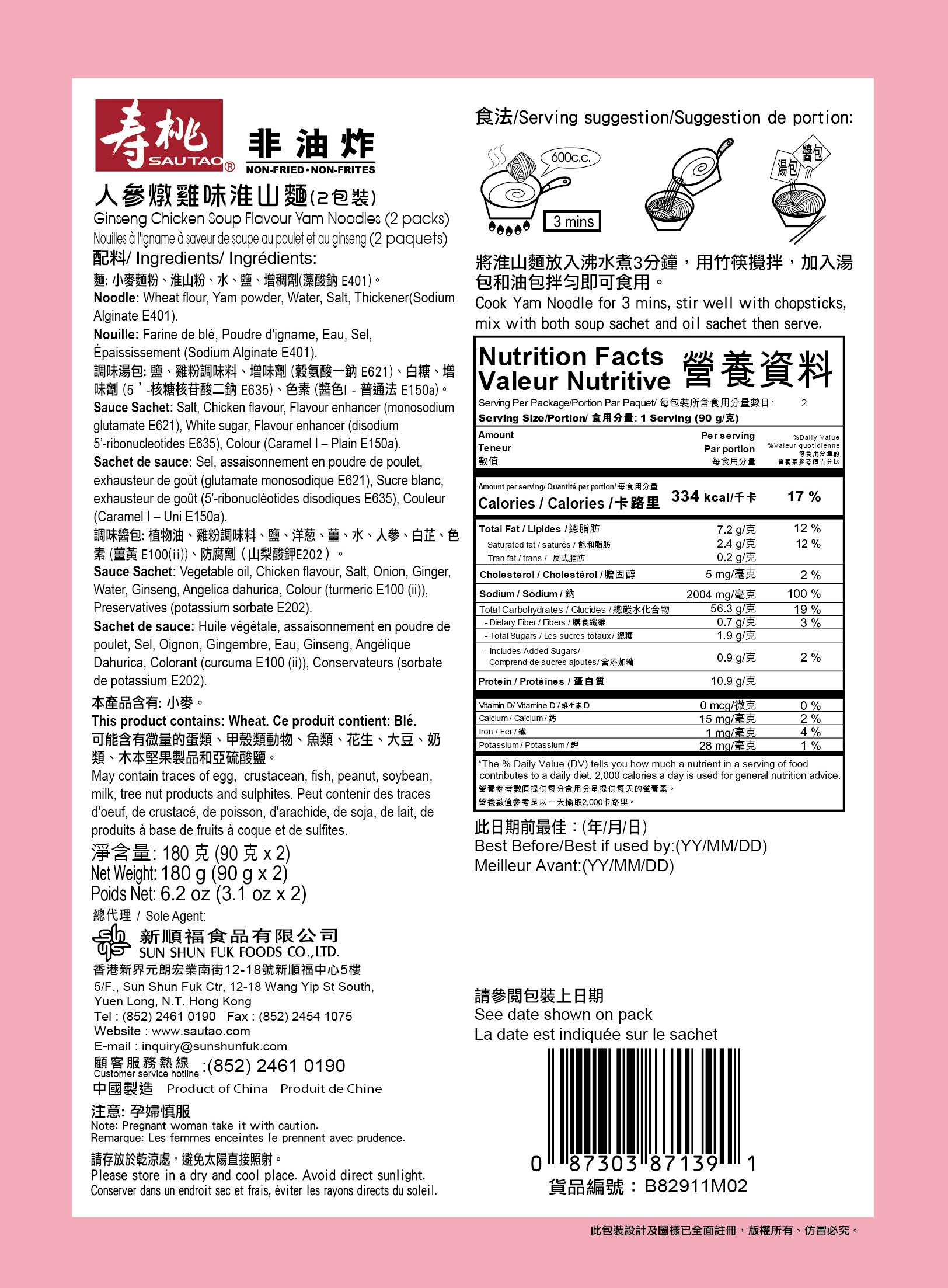 Noodles , Instant Noodles , Yam Noodles , Non-Fried Instant Noodles
