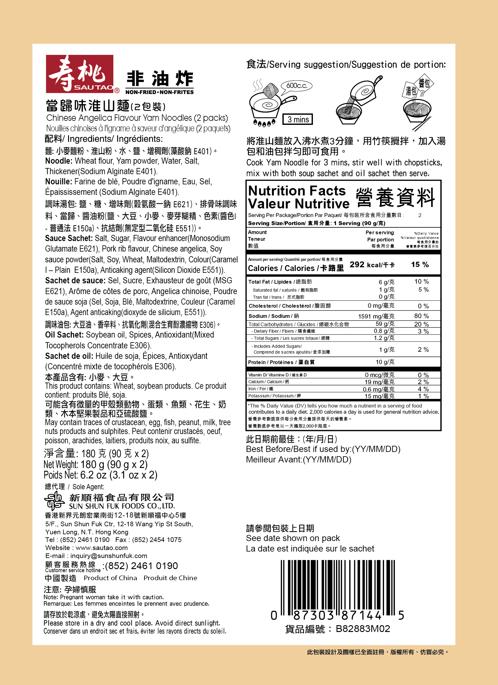 麵食 , 即食麵 , 淮山麵 , 非油炸即食麵
