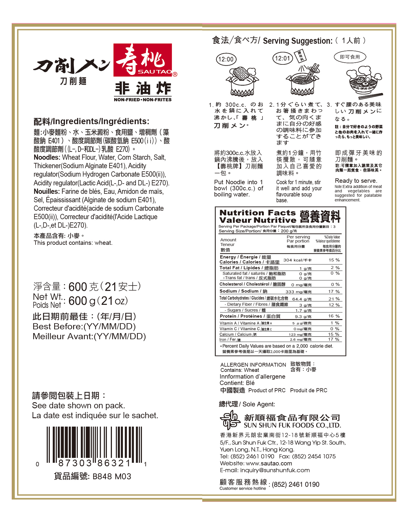 日本拉面 (3人前)