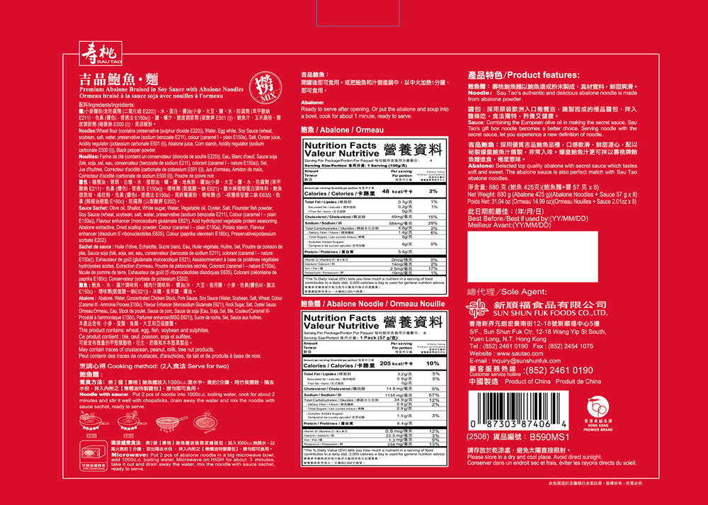 吉品红烧鲍鱼(1罐)配上鲍鱼面(8个)组合,鲜美高贵。礼盒设计典雅,送礼自用皆宜。