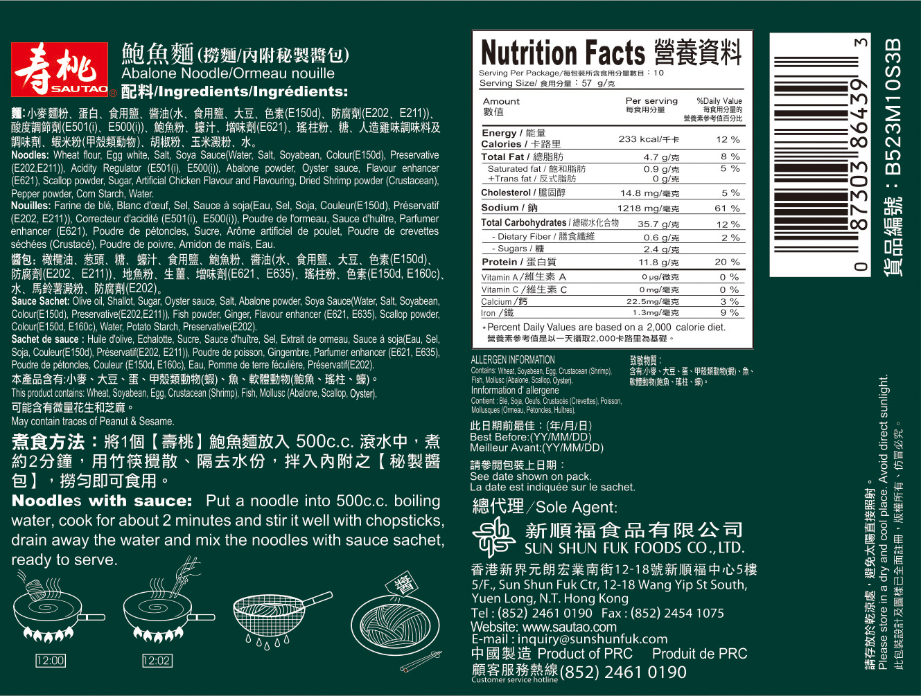 寿桃鲍鱼面以极品鲍鱼制成,蕴含鲜味精华,一试难忘。配以欧洲入口的橄榄油而制成秘制酱油,酱汁鲜美浓郁。