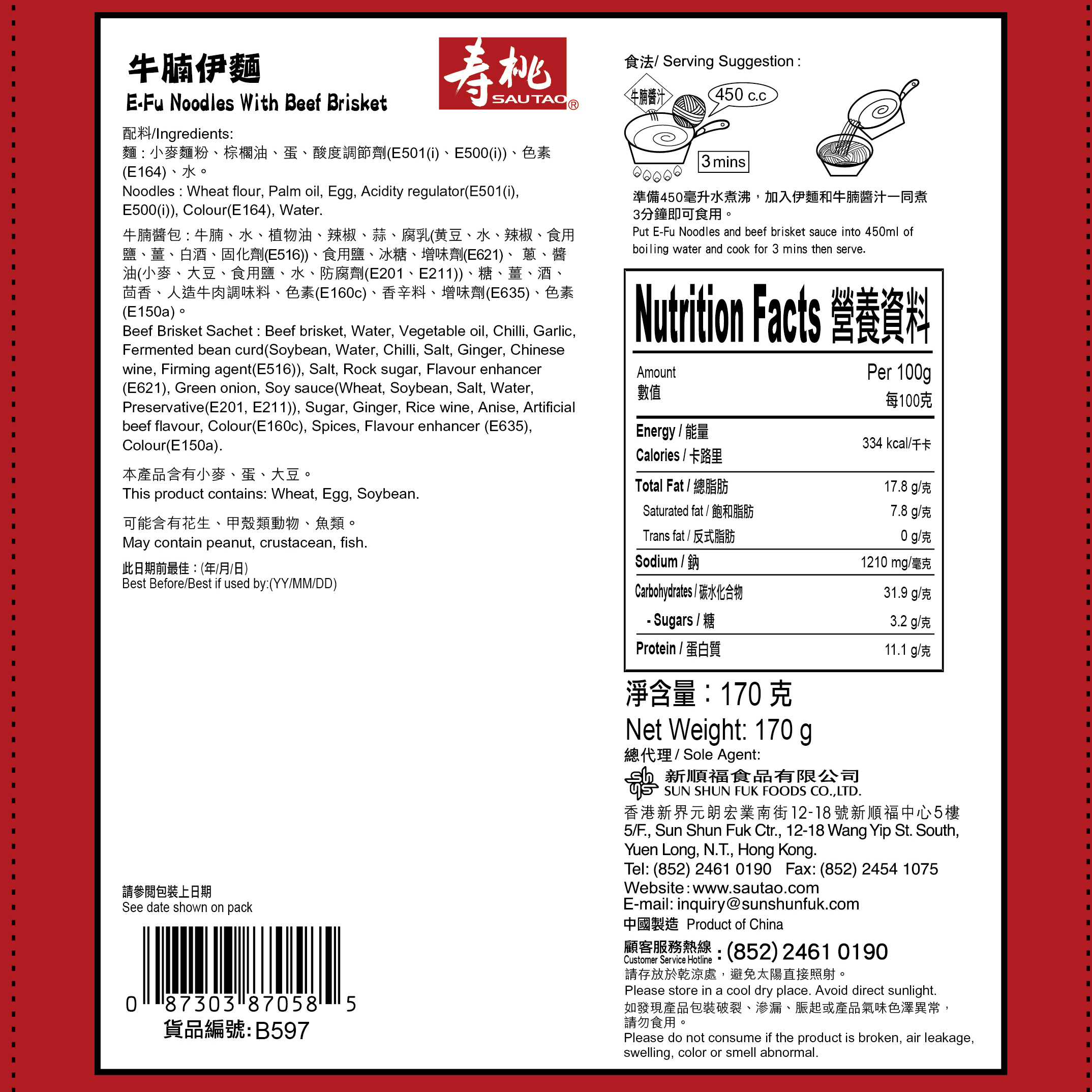 茶记经典 牛腩伊面寿桃牛腩伊面,面条Q爽又弹牙,非油炸更健康,搭配香辣牛腩,一煮一捞,只需3分钟,滋味伴左右。
