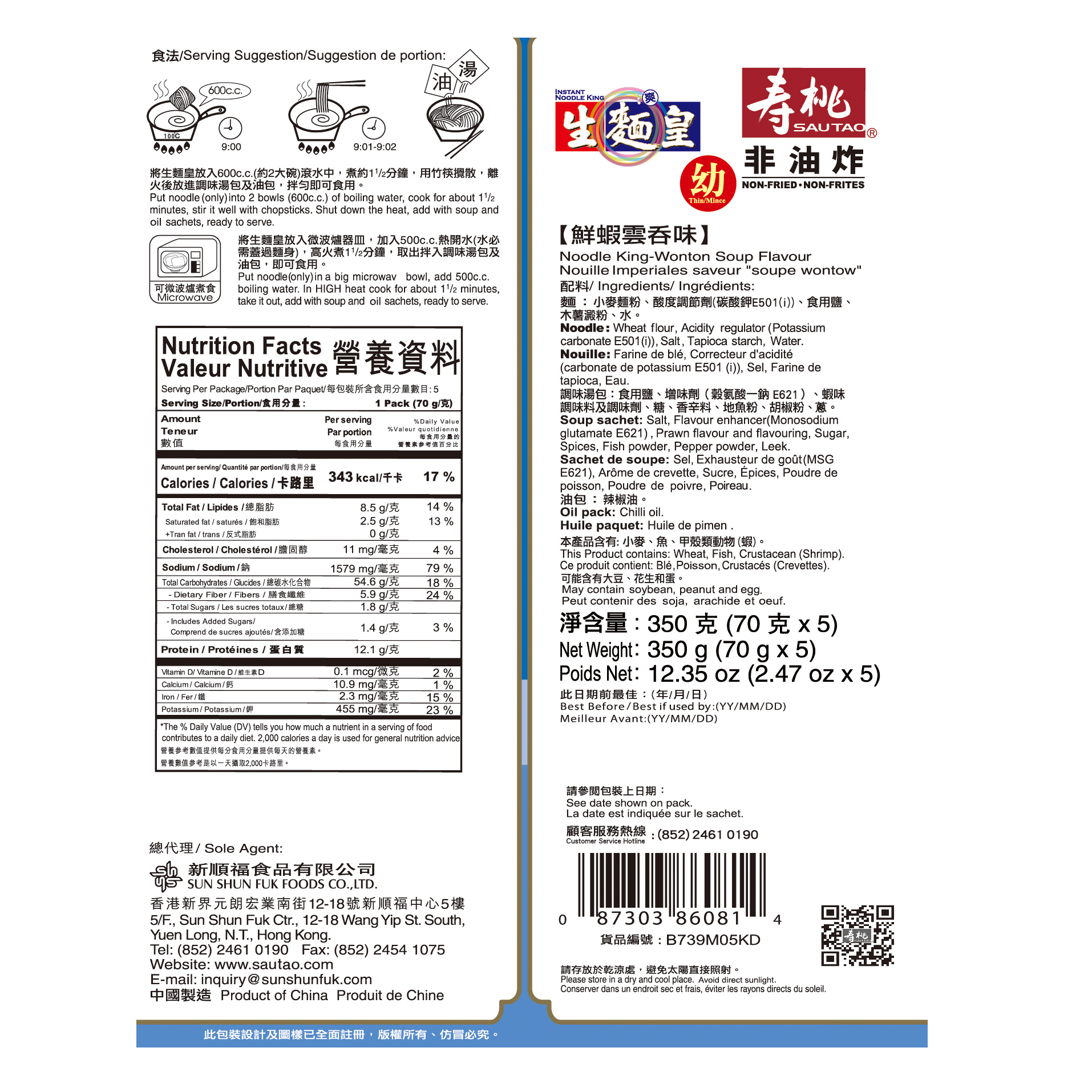 生面皇 (幼) - 鲜虾云吞味 (5包装)