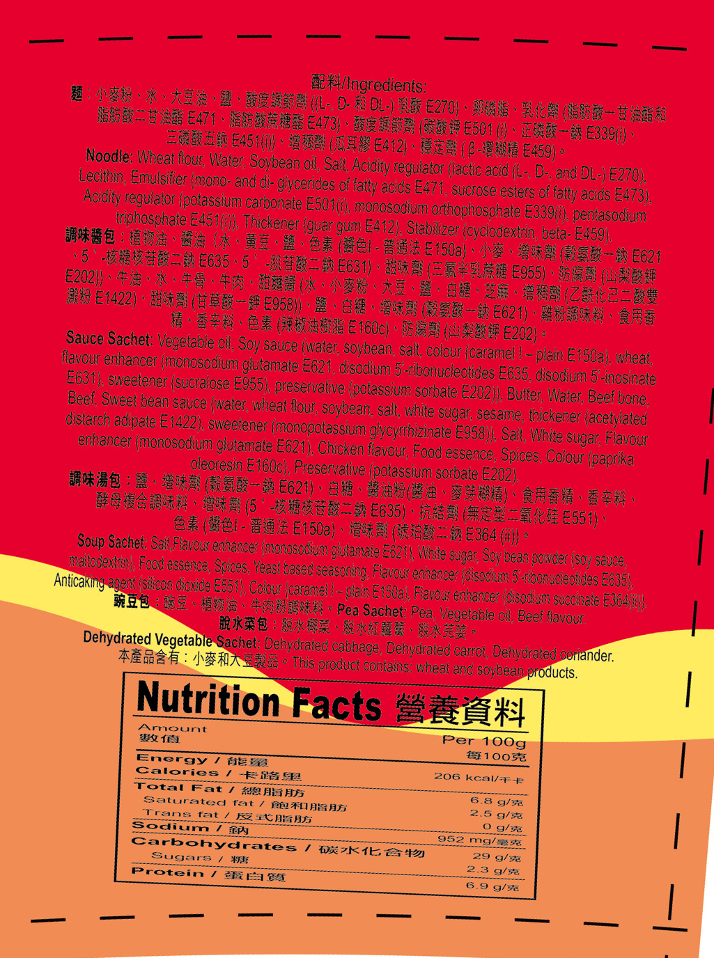 红烧牛肉香浓汤底,面条爽滑。 214克杯装,快速满足味蕾