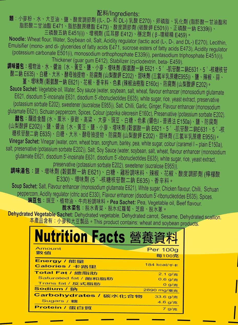 酸辣开胃,香浓汤底。 238克杯装,方便即食,随时享受地道风味。