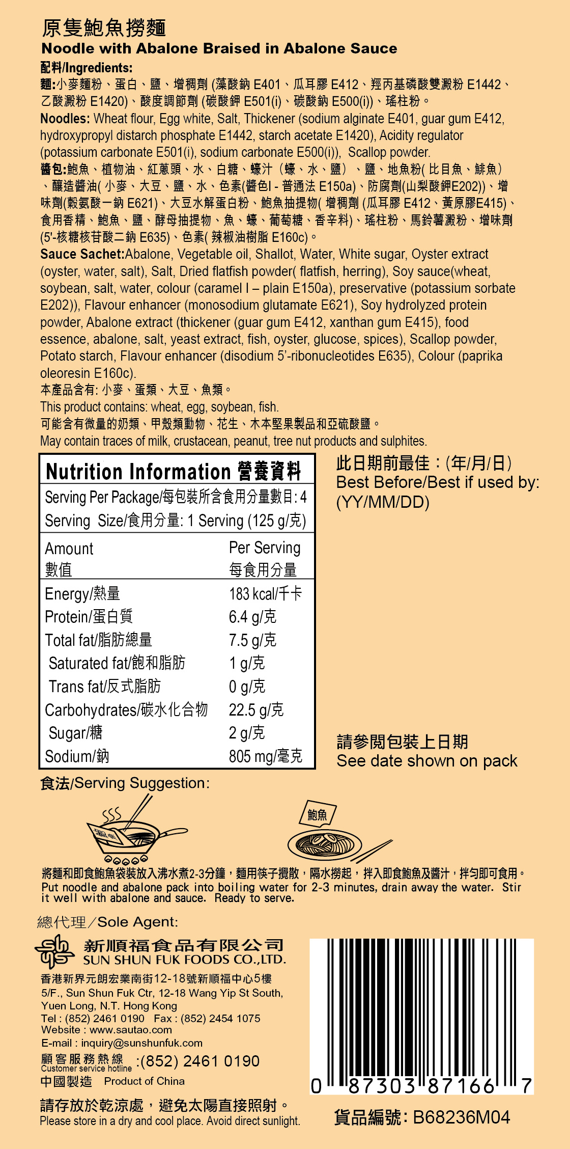 精選頂級整隻鮑魚,搭配口感彈牙的麵條,充分展現鮑魚的鮮香與麵條的韌勁。無論用於贈禮還是自用,皆能體現品味和格調。