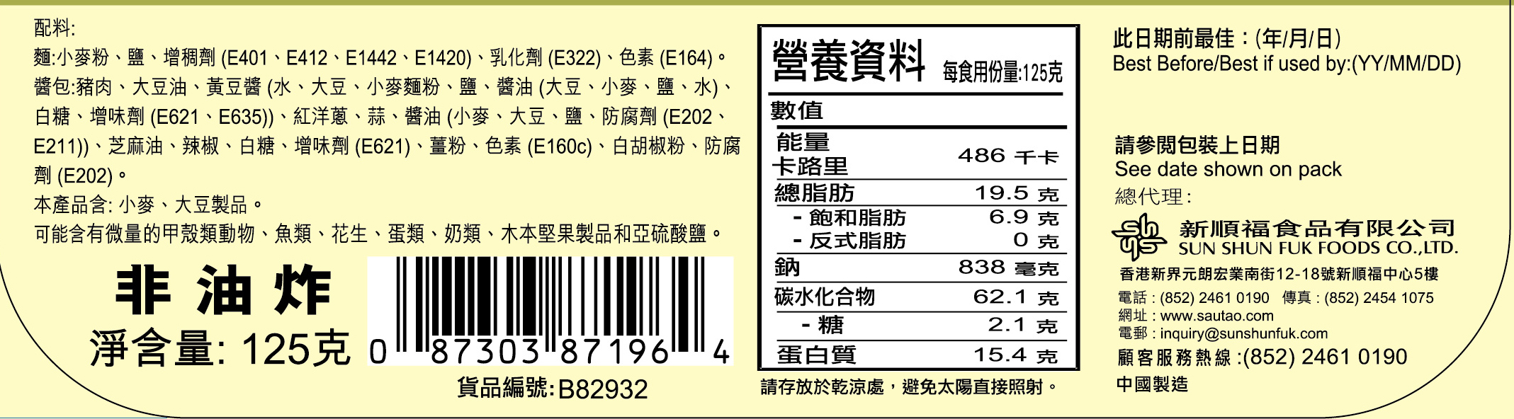 壽桃 麵霸 炸醬口味甄選高質麵粉製成,滑彈爽口,搭配濃郁香濃的傳統炸醬,125克方便享用,無論午餐或宵夜皆宜,快速滿足味蕾需求。